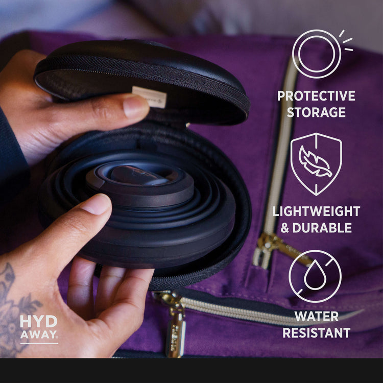Travel Case - Store your HYDAWAY collapsible water bottle, drinks tumbler, cups & bowls in a portable, stylish case when on the go to keep them clean and protected. Suitable for all HYDAWAY drinkware & dinnerware up to a 4” diameter.