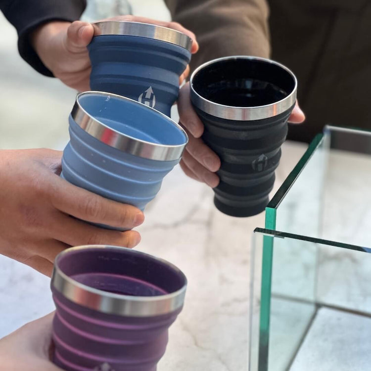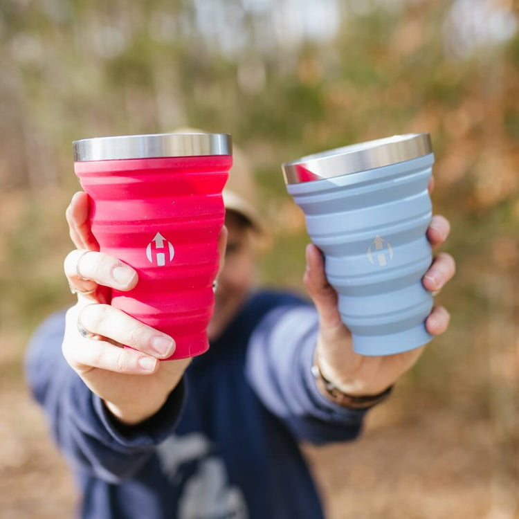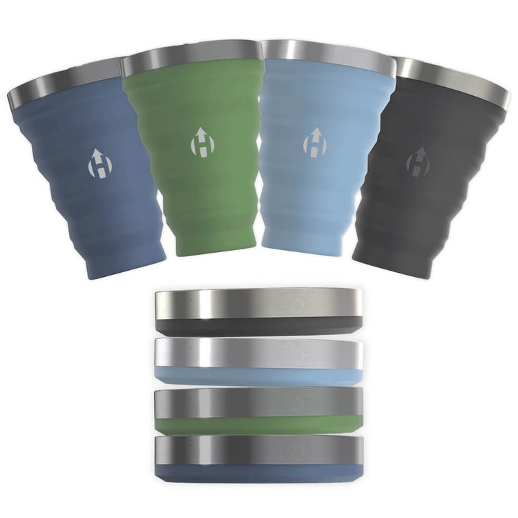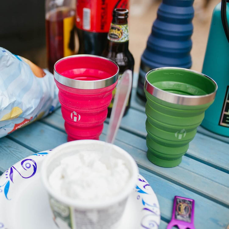 Our 4-Pack of Collapsible Pints hold 16 fluid ounces of your favorite drink in each cup and then fold down to less than an inch. We call it... Refreshment Simplified. Perfect for outdoor concerts, trailhead tailgates, and backyard BBQs all summer long!